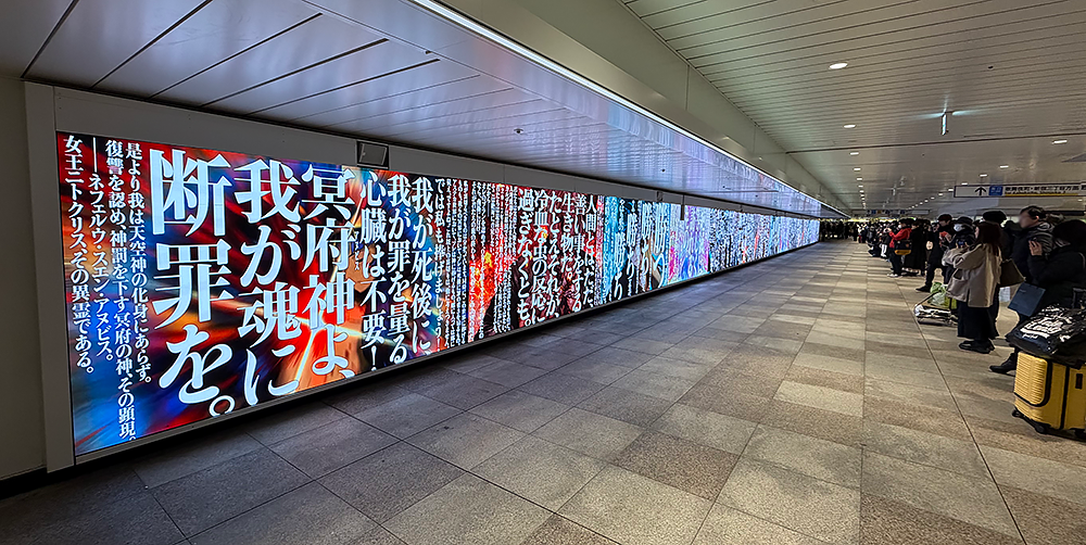 We lit up the Tokyo Metropolitan Government Building in Shinjuku, Tokyo, with projection mapping and ran displays at Shinjuku Station. The display in the station's East-West Passageway left me speechless. Even though I'd been part of making it happen, I just stood there taking it in.