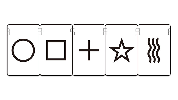 4The wavy lines, plus sign, square, circle, and star are in order, but the wavy lines, square, and star are flipped horizontally. The commands written on the cards, in particular the arrows, face different directions. If you can flip them so that you don't ruin the symbols made on the back, the X on the wavy lines won't change, the square's → will become a ↓, and the star's ↑ will become a →.